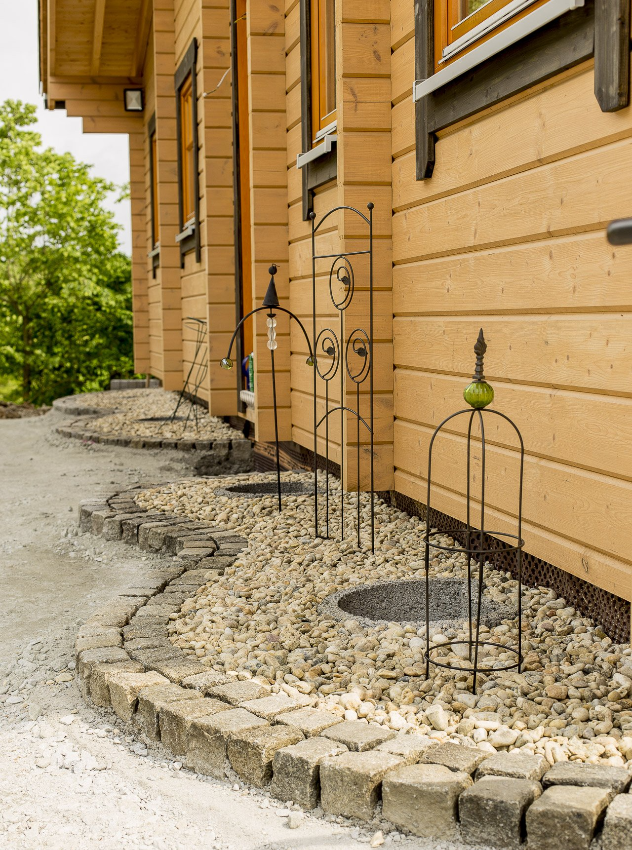 ergibt. Ergänzend sind Traufstreifen aus Kies rund um das Gebäude ratsam.